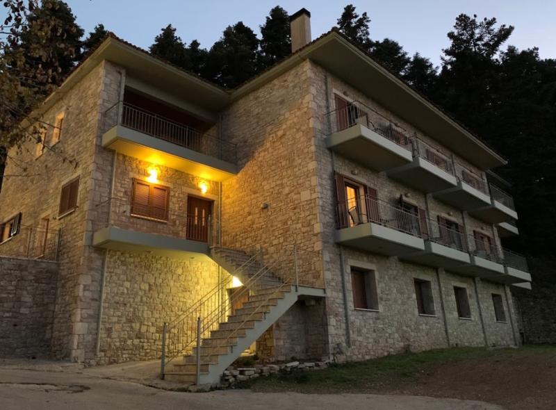 Το πρώτο κομμάτι του Ξενώνα αποτελεί ανακαίνιση και επέκταση του παλιού κτηρίου. Αυτό που τον χαρακτηρίζει είναι η πολυτελής παραδοσιακή ομορφιά του, η ποιότητά του και η άριστη εξυπηρέτηση που παρέχουν οι ιδιοκτήτες του. Στο καινούριο πέτρινο κτήριο που λειτούργησε πρόσφατα, υπάρχουν 10 δωμάτια με τζάκι και 5 διαμερίσματα χωρίς τζάκι, όλα με αυτόνομη θέρμανση και άριστη εξυπηρέτηση.